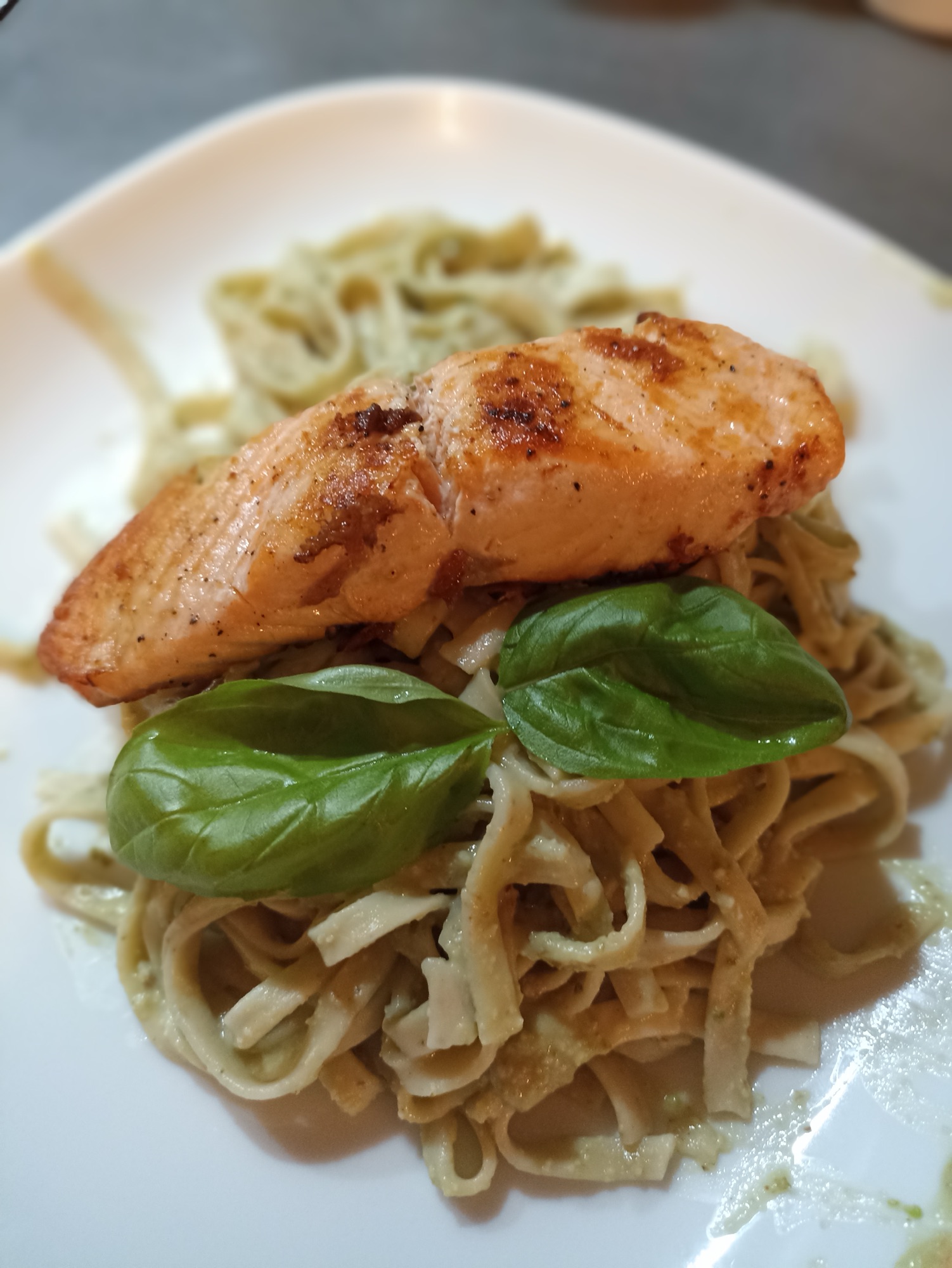 To celebrate, I’m sharing a dish that’s simple, elegant, and full of flavor: tagliatelle with pesto and grilled salmon. It’s one of those meals that looks like it came out of a restaurant kitchen—but you can make it at home with zero stress in under 30 minutes.